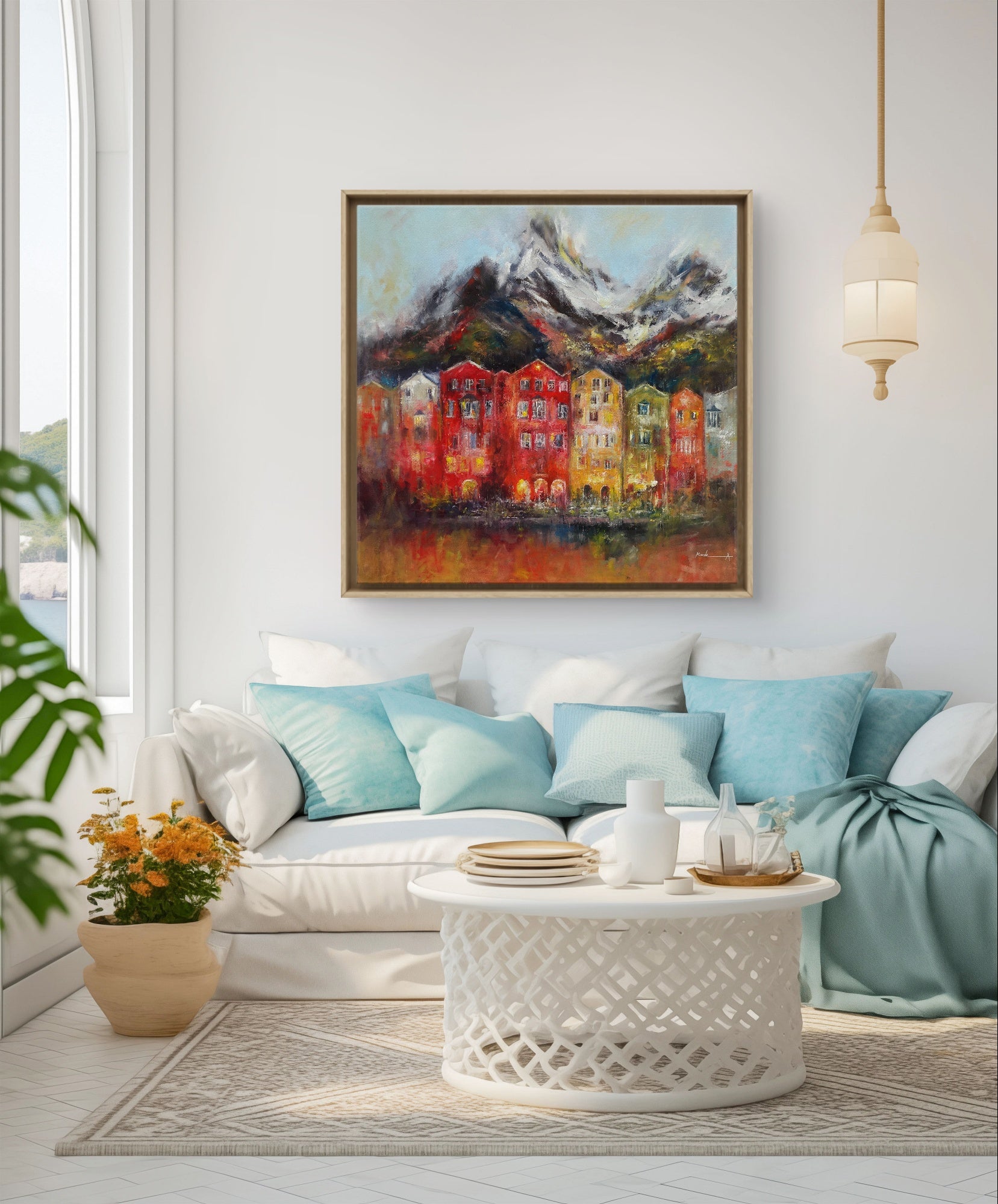 Standing in the heart of Innsbruck, watching the colorful historic buildings come alive against the dramatic Alpine backdrop. I was mesmerized by how the warm reds, yellows, and oranges of the traditional architecture seemed to dance with the moody mountain peaks behind them.
