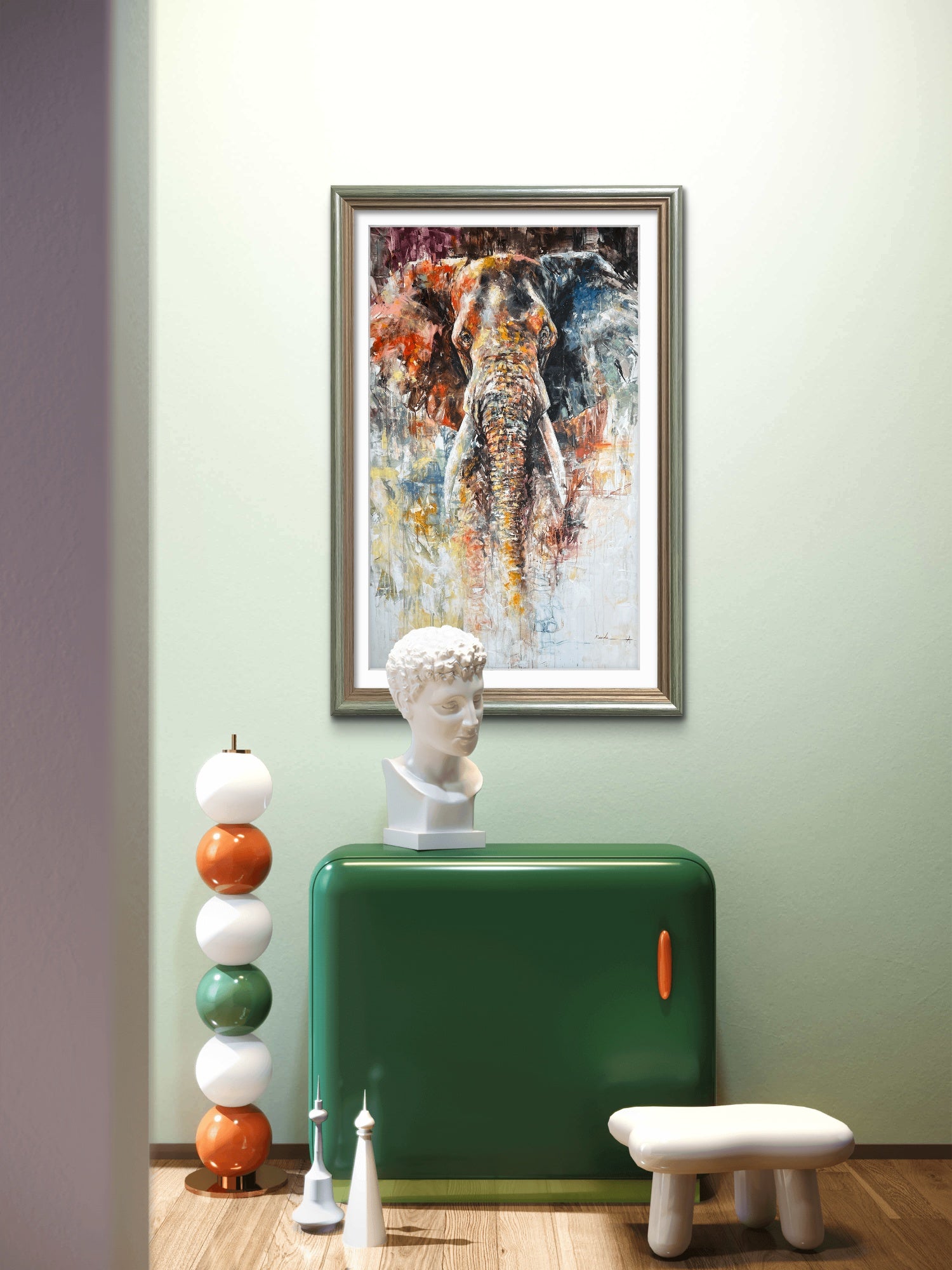 Due to its large size (160×120 cm), this artwork will be shipped rolled in a protective tube. This method ensures both safety and efficiency while preserving the painting’s integrity. A professional framer can easily re-stretch the canvas upon arrival.